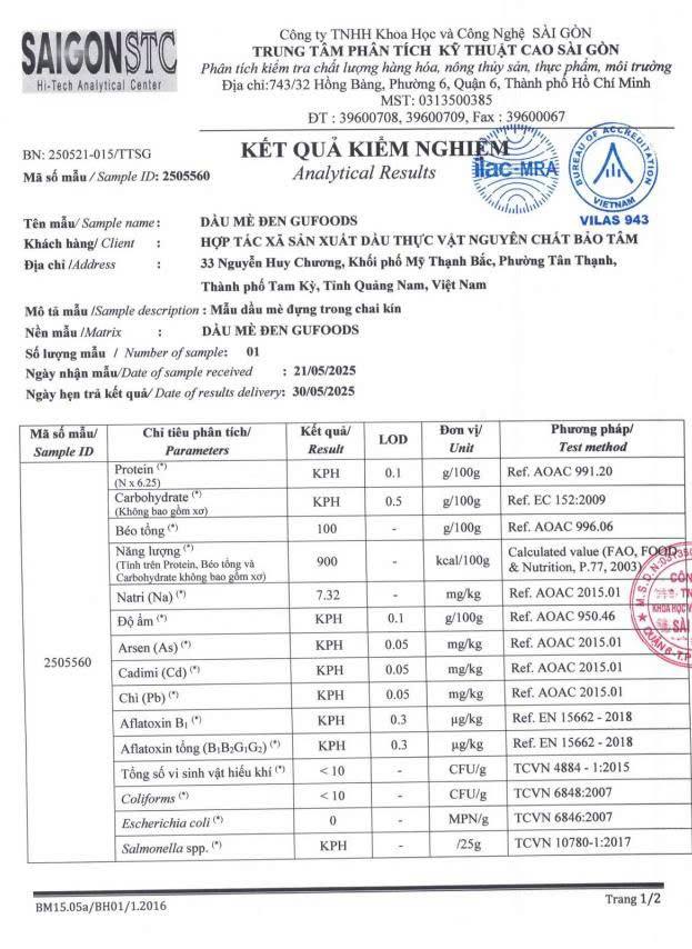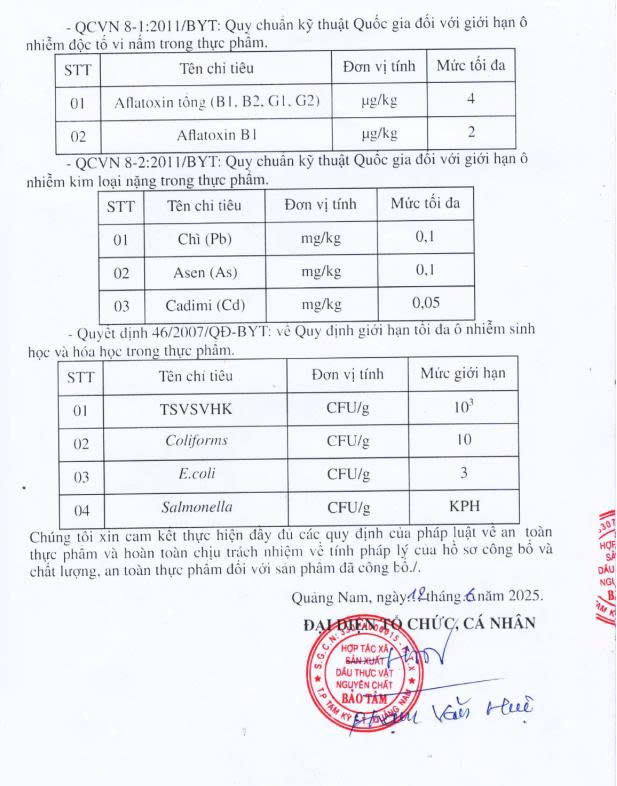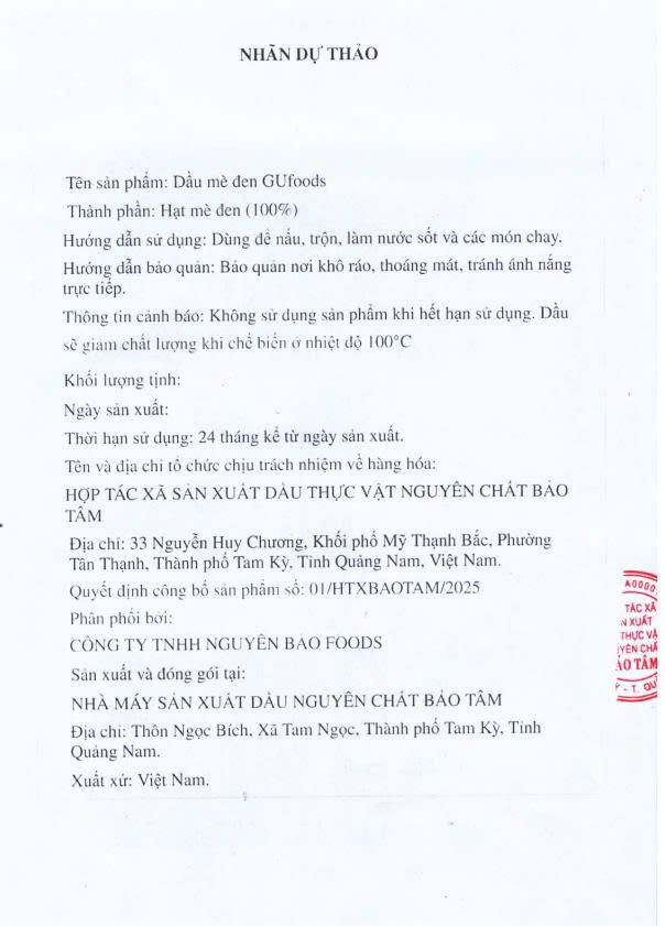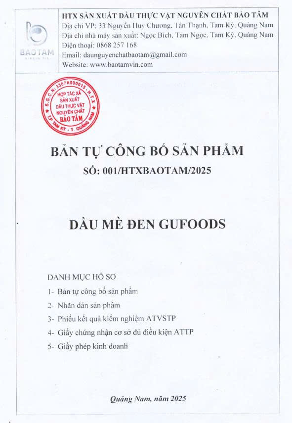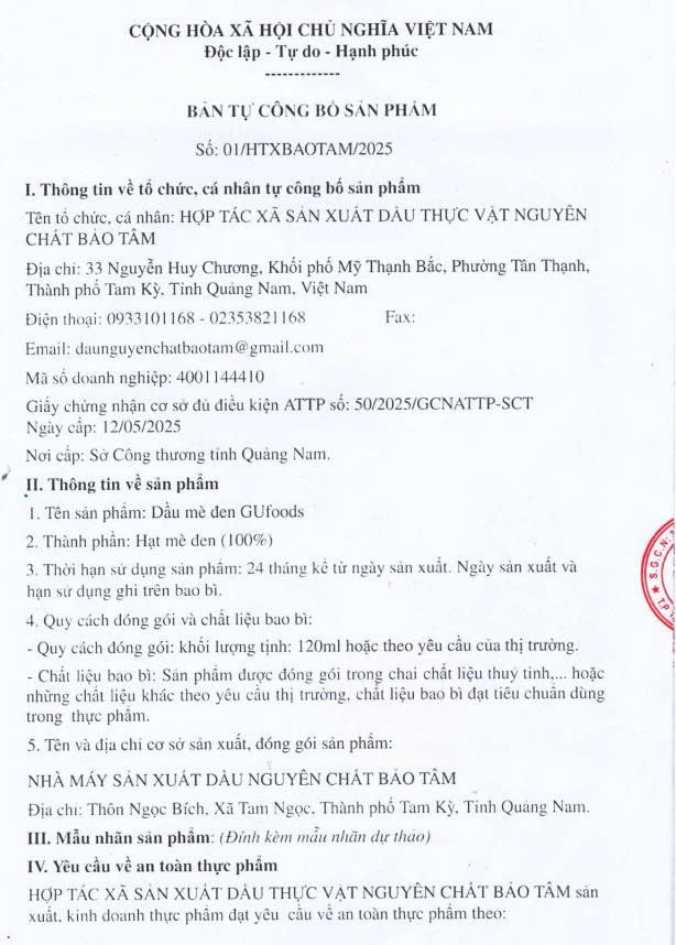 BẢN TỰ CÔNG BỐ CHẤT LƯỢNG DẦU MÈ ĐEN GUFOODS